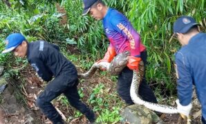 15 Menit ‘Pertarungan’ Melawan Ular Sanca 15 Kilogram di Kuningan