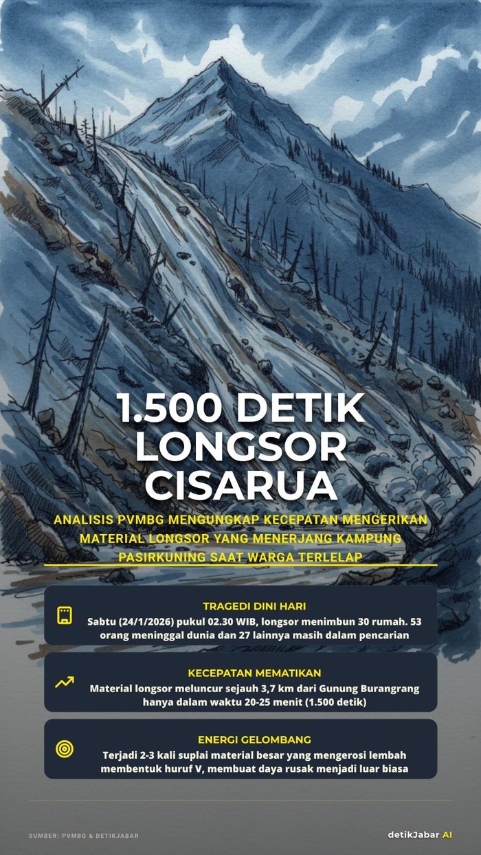 Deru air dan material tanah dari lereng Gunung Burangrang meluncur tanpa ampun pada dini hari. Sekejap, bencana longsor menerjang Kampung Pasirkuning, Desa Pasirlangu, Kecamatan Cisarua, Kabupaten Bandung Barat, Sabtu (24/1/2026).