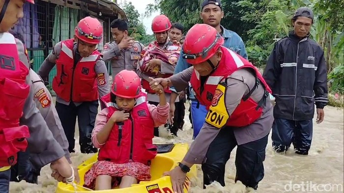 “Alhamdulillah kami berhasil menyelamatkan dan mengevakuasi warga yang lumpuh akibat banjir. Kami membawanya dari rumah yang sudah terendam banjir,” ujar Brigadir Ria Indriani, Petugas Polsek Pamanukan.