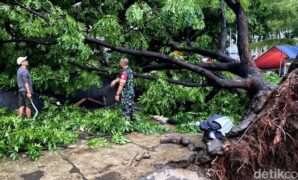 Pohon Mahoni di Alun-Alun Ujungberung Tumbang Diterjang Puting Beliung