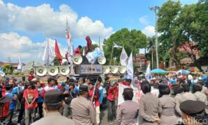 Buruh Demo di Kantor Bupati Cirebon, Tuntut UMK 2026 Naik Maksimal