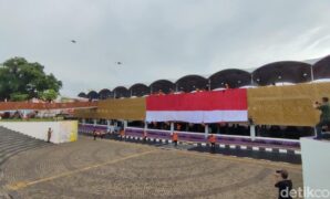 Kala Bendera Merah Putih Jumbo Membentang di Alun-alun Ciamis