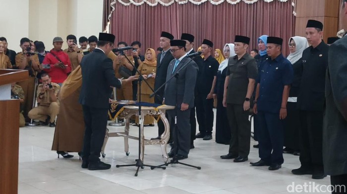 Bupati Tasikmalaya Cecep Nurul Yakin memimpin langsung pengambilan sumpah dan pelantikan 14 pejabat di lingkungan Pemerintah Kabupaten Tasikmalaya. Saat nama-nama pejabat disebut, beberapa pasang mata di kursi undangan terlihat berkaca-kaca.
