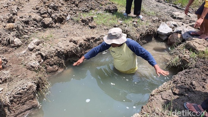 Nur (42), salah seorang pekerja pembangunan sempat menceburkan dirinya ke galian tersebut, untuk mengukur kedalamannya.