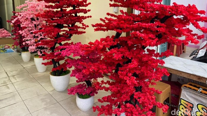 “Ini bukan Sakura, namanya bunga Mei Hwa,” kata Asong sambil merapikan ranting yang terbuat dari kawat kecil.