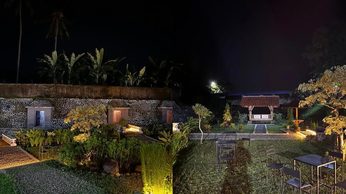 Ketika malam hari tiba, suasana di Goa Jepang Coffee Space terasa semakin syahdu. Lampu-lampu taman menyala dan memberikan pencahayaan yang hangat di berbagai sudut area. Penerangan ini membuat kawasan terlihat estetik dan cocok untuk bersantai.